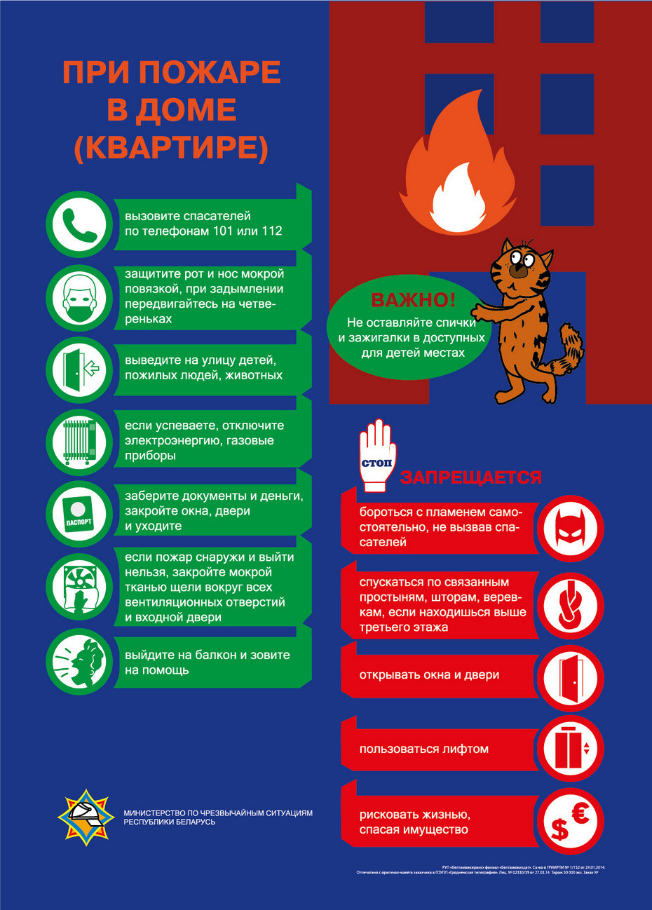 • По прибытии спасателей полностью подчиняйтесь их командам. Не заходите обратно в горящее помещение до тех пор, пока специалисты не скажут, что опасность миновала.